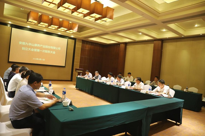 2018年8月31日,安徽九华山康养产业股份有限公司(以下简称“九华康养公司”)创立大会在合肥召开。省投资集团总经理助理、省高新投公司董事长,九华山旅游集团董事长李正白,池州产业投资集团董事长何宏炳,中安健康公司副总经理牛阳出席会议。