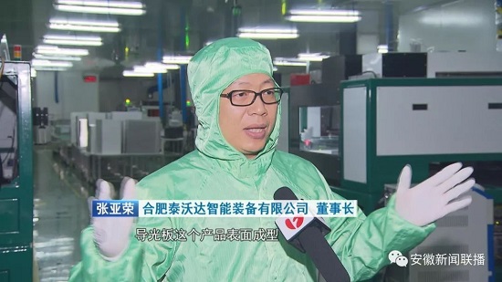 合肥泰沃达智能装备有限公司,是省高新投承办的2018“创响中国”安徽省创新创业大赛二等奖获奖项目。泰沃达公司自主研发的导光板激光制程装备,加工的最大尺寸可以达到110英寸,目前这也是全球原创的首台套装备。公司2016年从沿海经济发达地区迁址合肥新站区,与京东方为邻,开始了超大尺寸导光板激光制程装备的研制。由于技术要求高,再加上没有经验可供借鉴,两年来,泰沃达公司摸着石头过河,在原型机的开发上已累计投入一千多万元,目前产品基本定型,预计明年就可以批量投放市场。