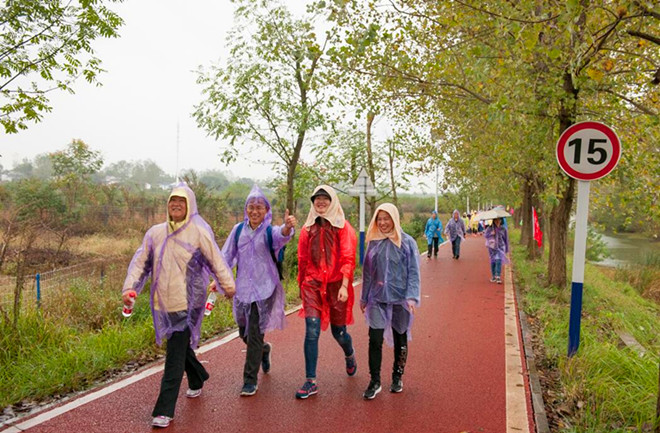 毅行活动分为45周岁以上5公里组和45周岁以下10公里组。发令枪响后,大家纷纷向着前方目标进发,或尽情奔跑,或小步慢行,在绵绵细雨中,呼吸新鲜空气,感受自然,挥洒汗水,体验着雨中毅行的快乐和毅力,在疲累时互相勉励、鼓劲,共同坚持走完全程。工作人员在沿途每隔2.5公里设置了补给站,准备了点心、饮水等帮助大家补充体力。按到达终点的顺序,最终成绩领先的员工获得了奖励。