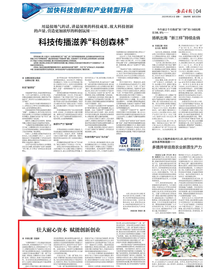 [安徽日报] 壮大耐心资本 赋能创新创业